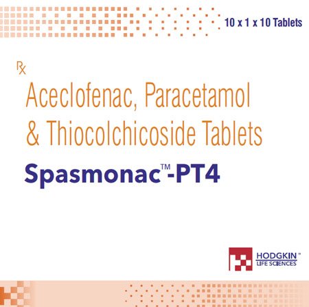 Composition: Aceclofenac 100mg + Paracetamol 325mg + Thiocolchicoside 4mg Tablets