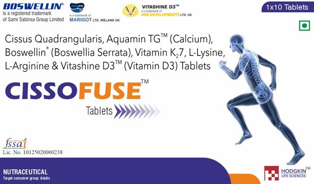 Composition: Cissus Quadrangularis 500mg, AquaminTM TG 500mg (Red algae derived multi-mineral complex; Lithothamnion species) equivalent to elemental calcium 164.4mg & 72 trace minerals, Boswellin® 100mg (Boswellia serrata with 70% total Boswellic acids & 20% β Boswellic acids), Vitamin K2-7 45mcg, L-Lysine 75mg, L-Arginine 75mg, Vitashine D3 600IU (Vitamin D3) Tablets